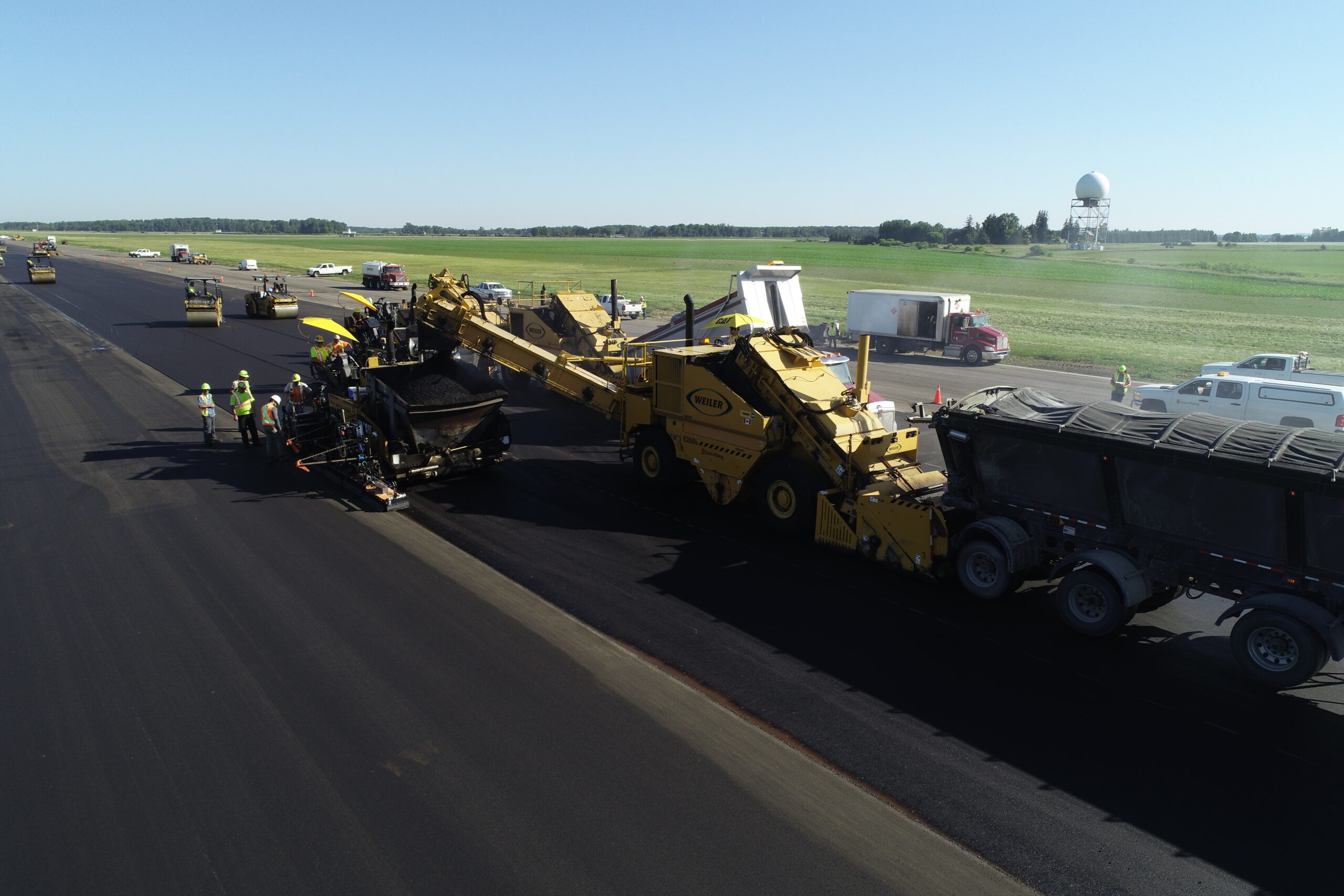 Project designed to be completed in seven stages. Before construction started Airport Authority asked us to see if we could change staging to meet requirements of a 7,000 ft runway so the Airport would not lose revenue from one of their largest Commercial Carriers. We were able to brainstorm with the Airport Authority and Consulting Engineer to revise staging to five stages and meet the timelines to have a 7000 ft runway completed by June 30th. Another key challenge was to meet the strict crossfall tolerances for the runway. Existing conditions were surveyed and milling depths were calculated and marked on pavement prior to milling. All asphalt milling was completed to profile grade to ensure design elevations were met with a constant asphalt thickness placed. Worked in conjunction with ongoing training school flights accessing taxiways and second runway