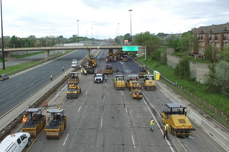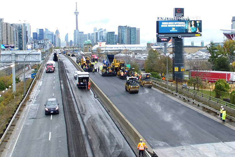 As part of the state of good repair of the major hub into Toronto, GIP (formerly Coco Paving) was contracted by the City to perform accelerated repairs of the Gardiner Expressway. The work on this project involved roadway milling, asphalt paving, shoulder repairs, pavement marking, guide rail repairs, curb replacement, concrete slab removal with asphalt replacement, electrical loops, and rout and seal cracks.