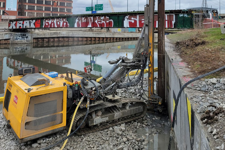 GIP was also contracted for the structural repairs and replacement of the sheetpile walls north of Lakeshore Blvd. in the Don River. This included working off barges, sheet piles, and large diameter micropiles.