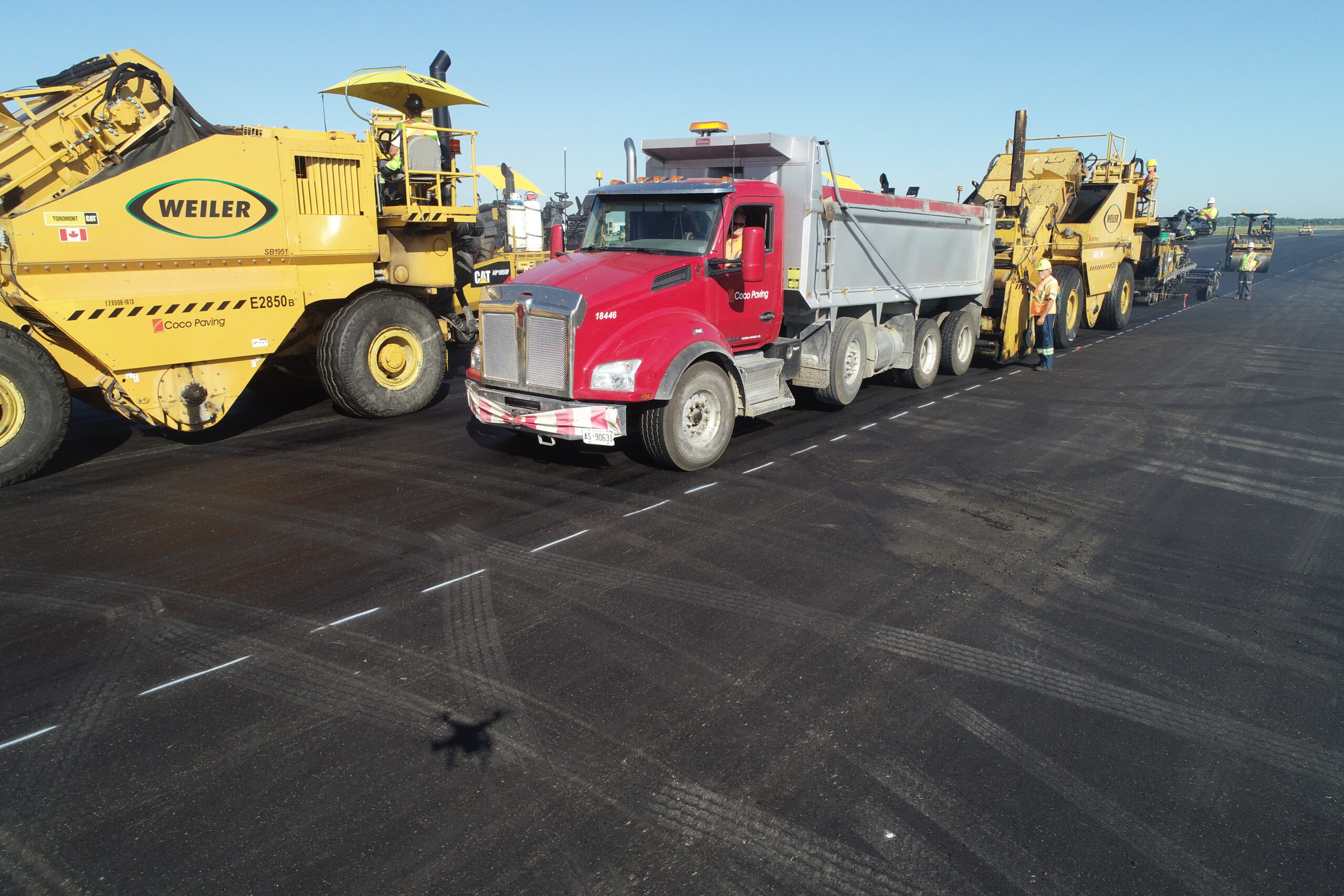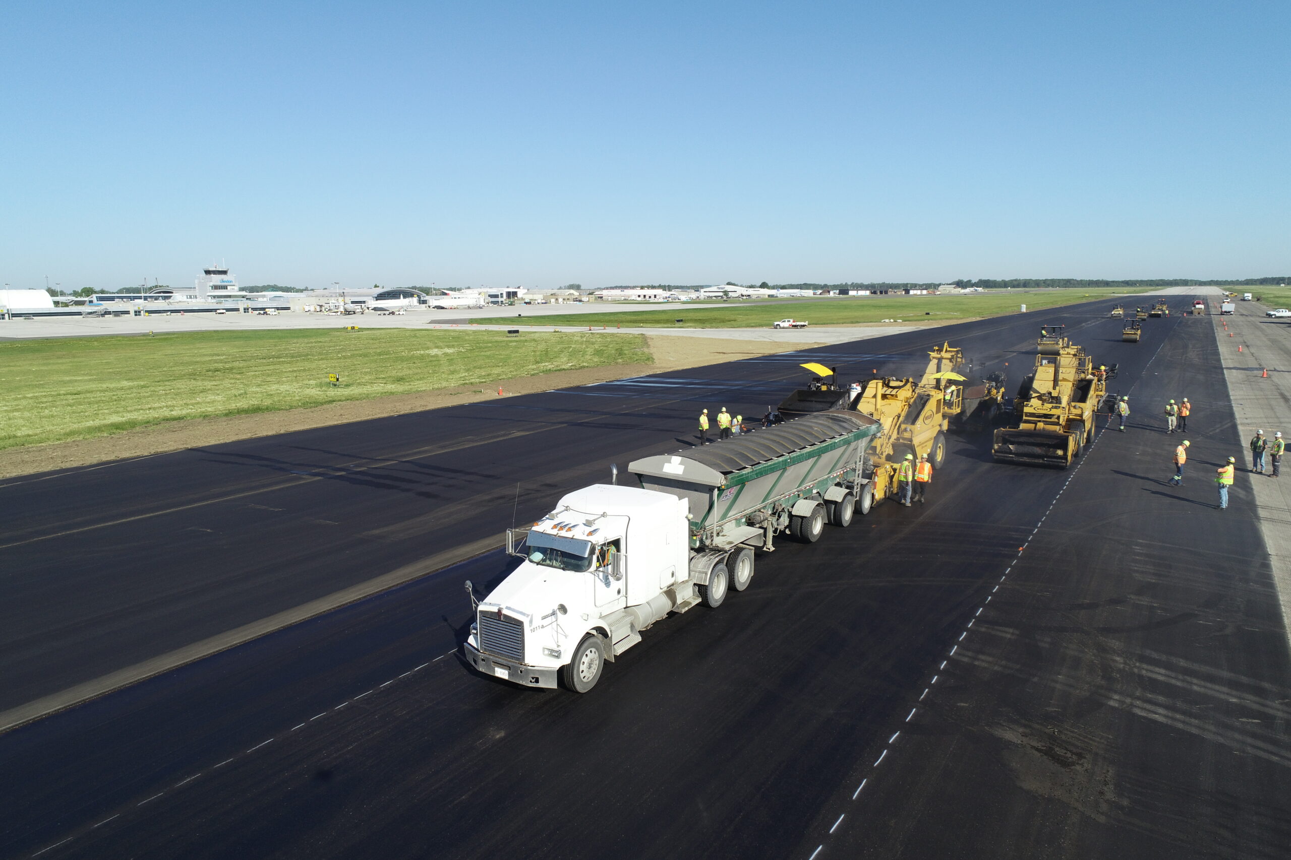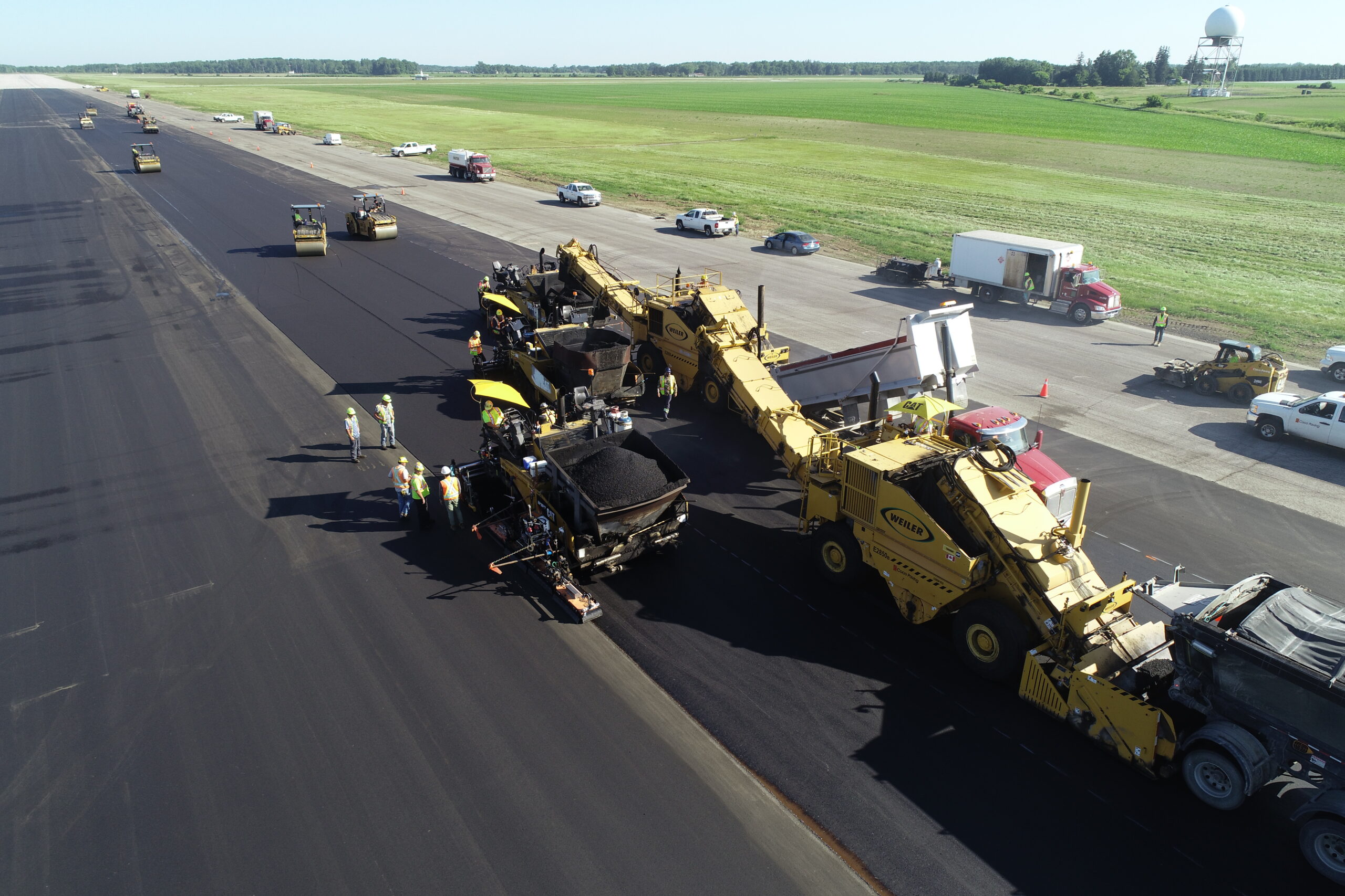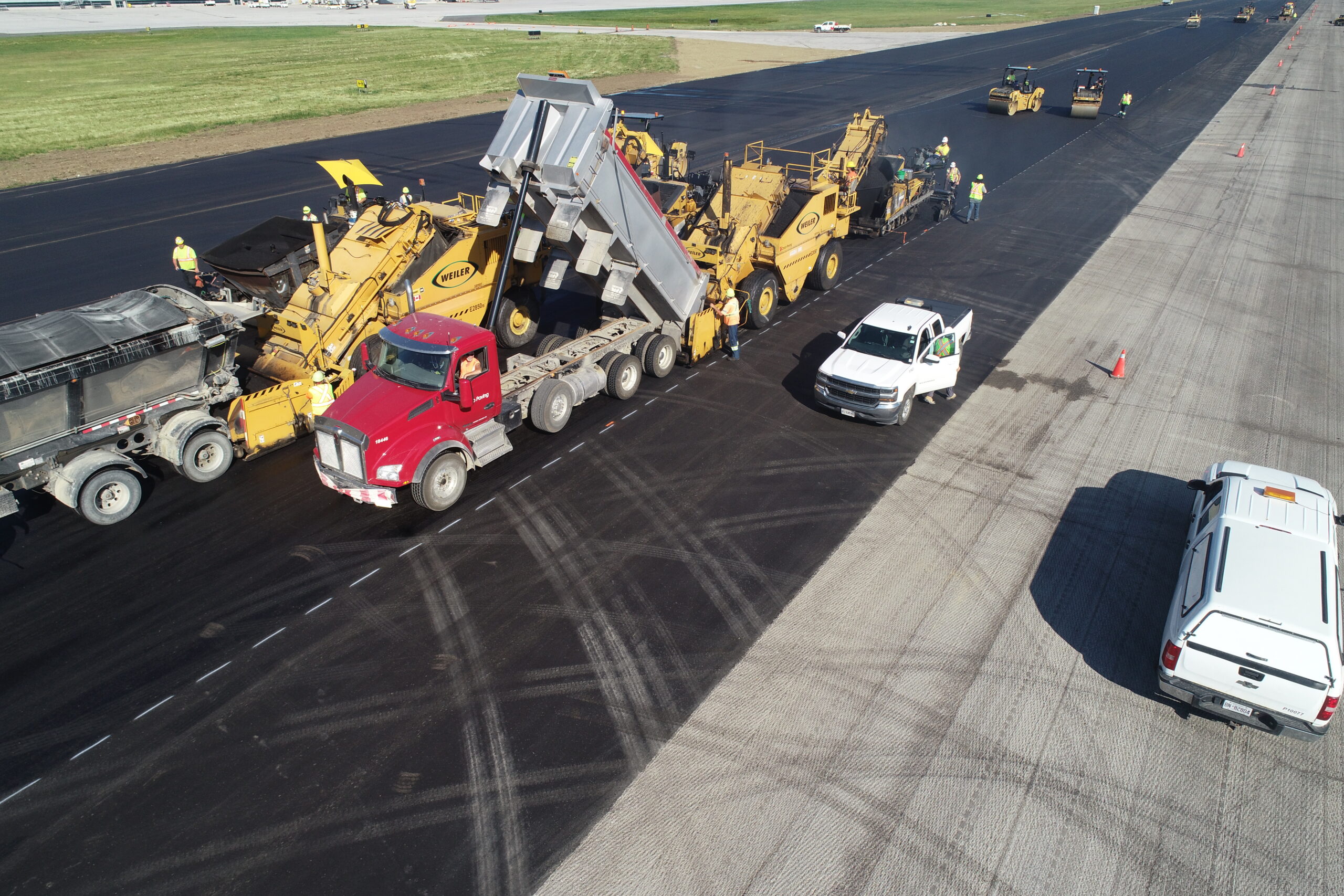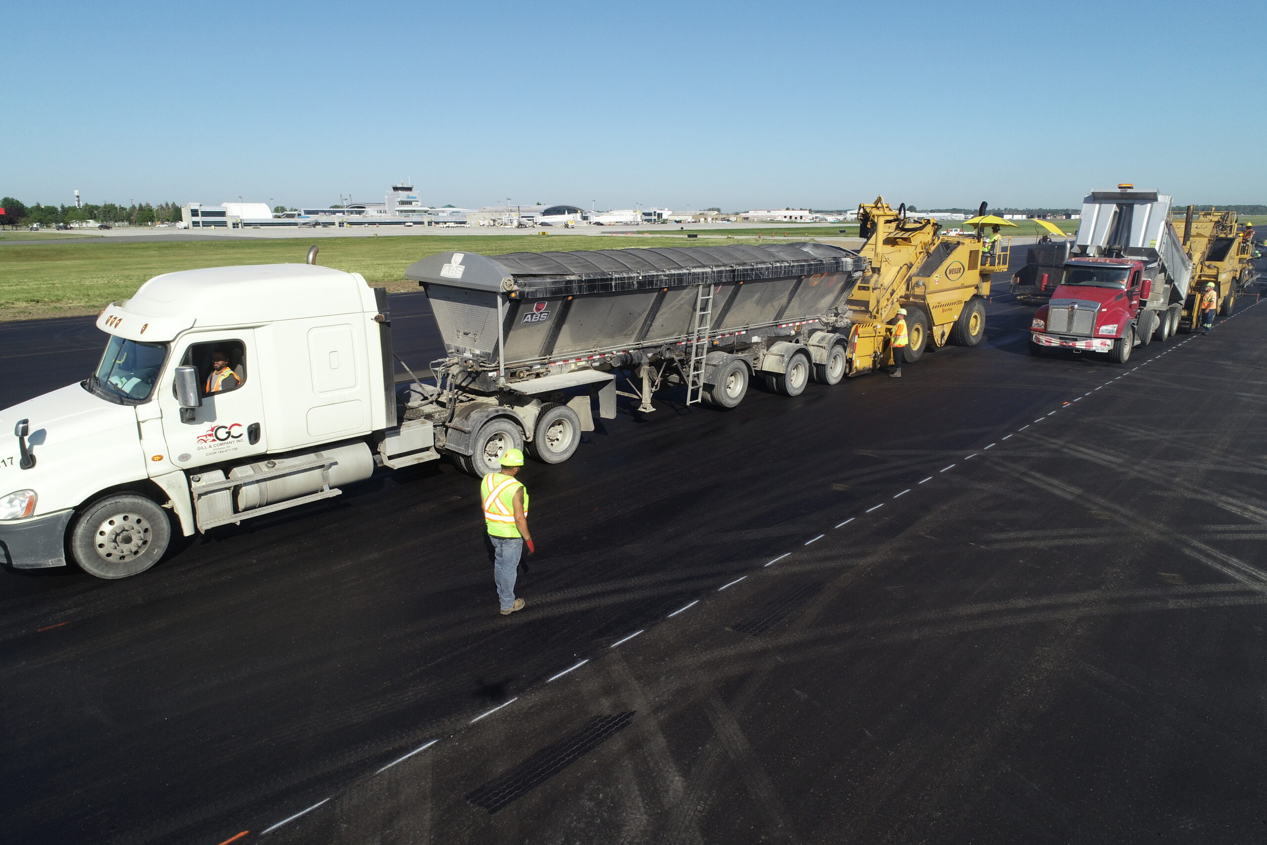 Project designed to be completed in seven stages. Before construction started Airport Authority asked us to see if we could change staging to meet requirements of a 7,000 ft runway so the Airport would not lose revenue from one of their largest Commercial Carriers. We were able to brainstorm with the Airport Authority and Consulting Engineer to revise staging to five stages and meet the timelines to have a 7000 ft runway completed by June 30th. Another key challenge was to meet the strict crossfall tolerances for the runway. Existing conditions were surveyed and milling depths were calculated and marked on pavement prior to milling. All asphalt milling was completed to profile grade to ensure design elevations were met with a constant asphalt thickness placed. Worked in conjunction with ongoing training school flights accessing taxiways and second runway